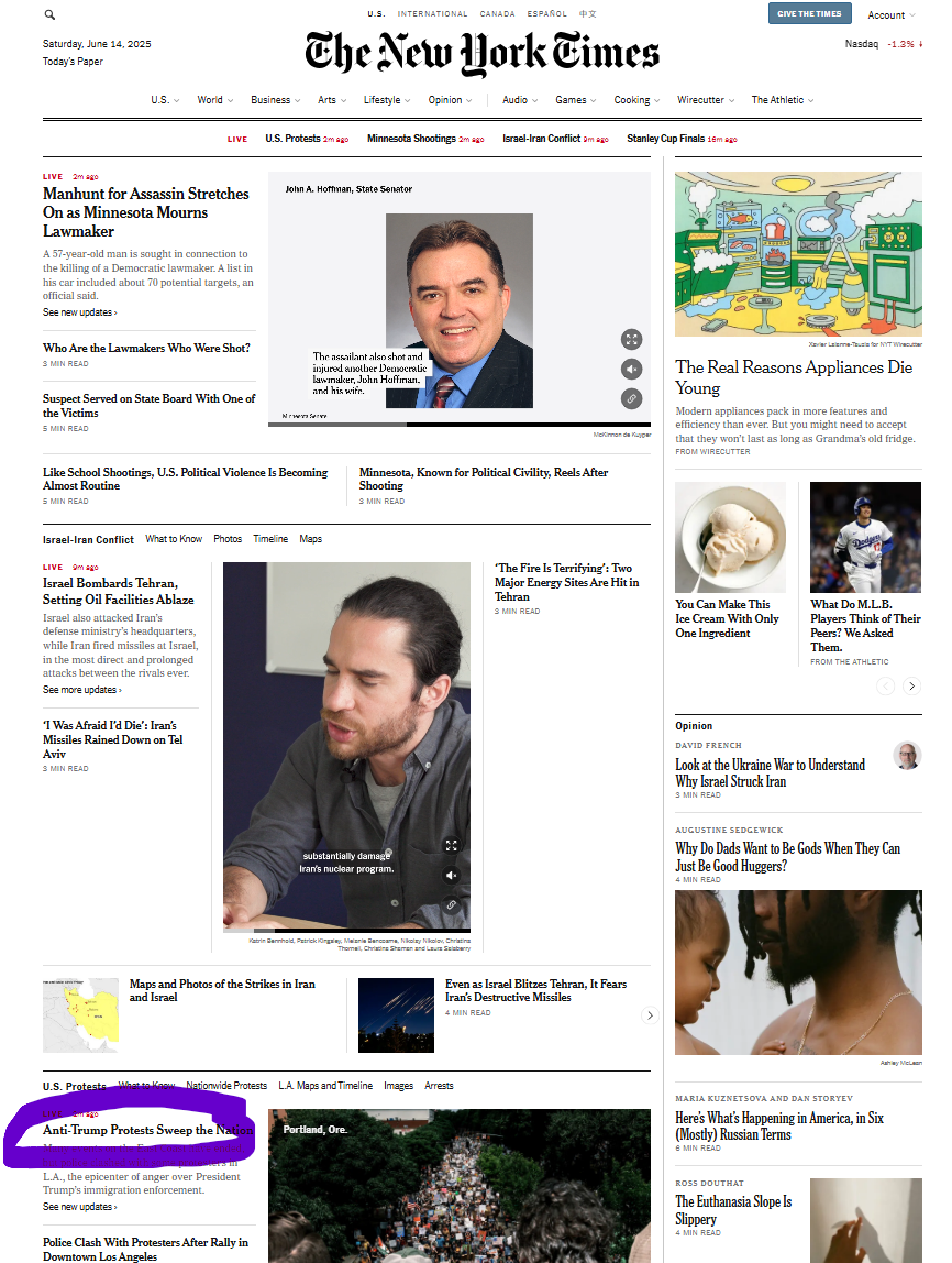 - Tras los atentados en Minnesota, las autoridades han intentado cancelar las manifestaciones en el estado, una respuesta decepcionante ante la violencia política. La gente ha salido a la calle igual.