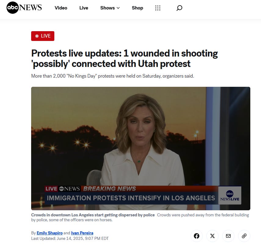Lo que está contando a los medios es que la guardia nacional y los marines apoyando a los agentes de inmigración en Los Ángeles están ahí para “liberar la ciudad de los socialistas y los líderes opresores que la alcaldesa y el gobernador han impuesto sobre los ciudadanos”.